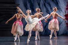 Clara flies through the clouds and arrives in a strange place where a fantastic world is conjured up by Drosselmeyer. He shows her the sun, the moon, flowers and dancers from many different lands. The Rat King bursts in, but the Nutcracker Prince and Drosselmeyer banish him for ever. Drosselmeyer now puts on a grand entertainment in Clara’s honour as a reward for her bravery. She joins in many of the dances and is finally transformed into the Sugar Plum Fairy, the ballerina of her dreams. The Nutcracker Prince reappears and dances with her. As the dancing reaches its climax the dream world vanishes and Clara awakens at the foot of the Christmas tree.