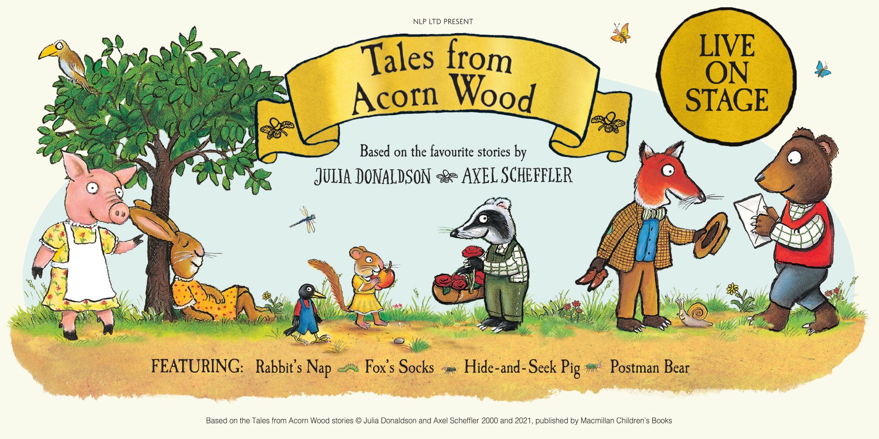Julia Donaldson and Axel Scheffler’s beloved Tales from Acorn Wood stories are brought to life on stage in an enchanting lift-the-flap experience.